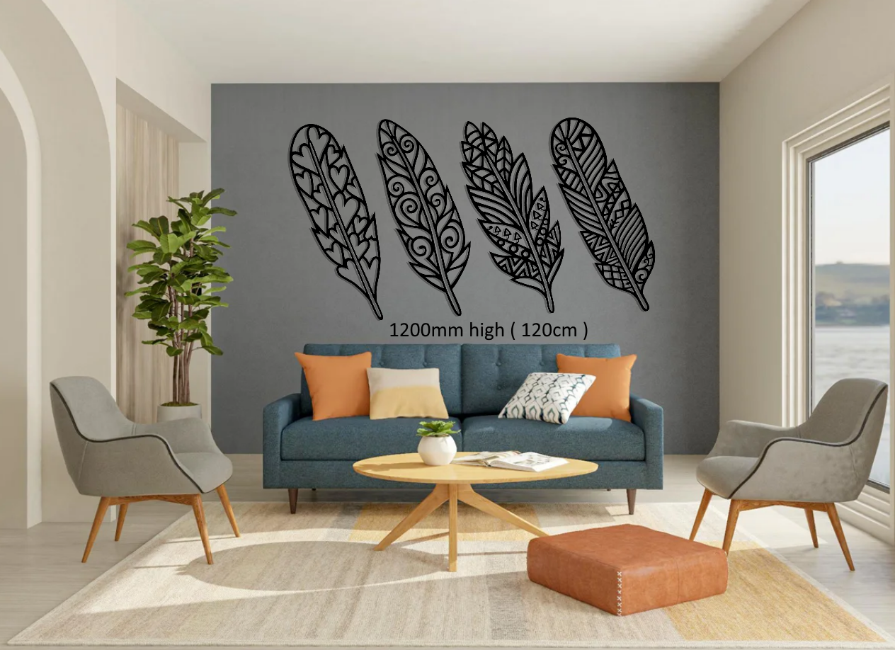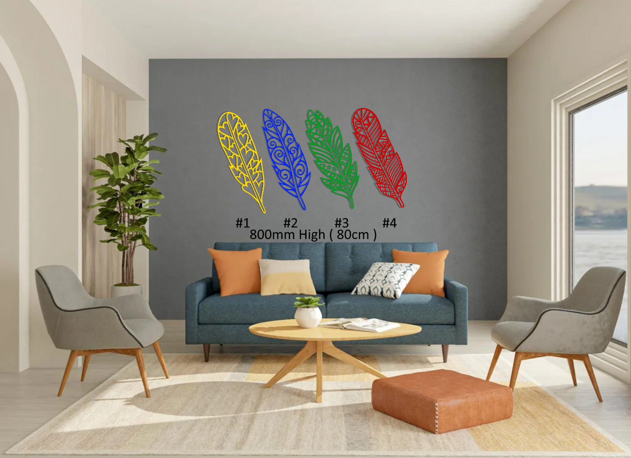 These feathers are made from ACM for the outdoors and indoors. These feathers are made from ACM for the outdoors and indoor use. This gives the art a very flat, rust-free, and color-fast result.