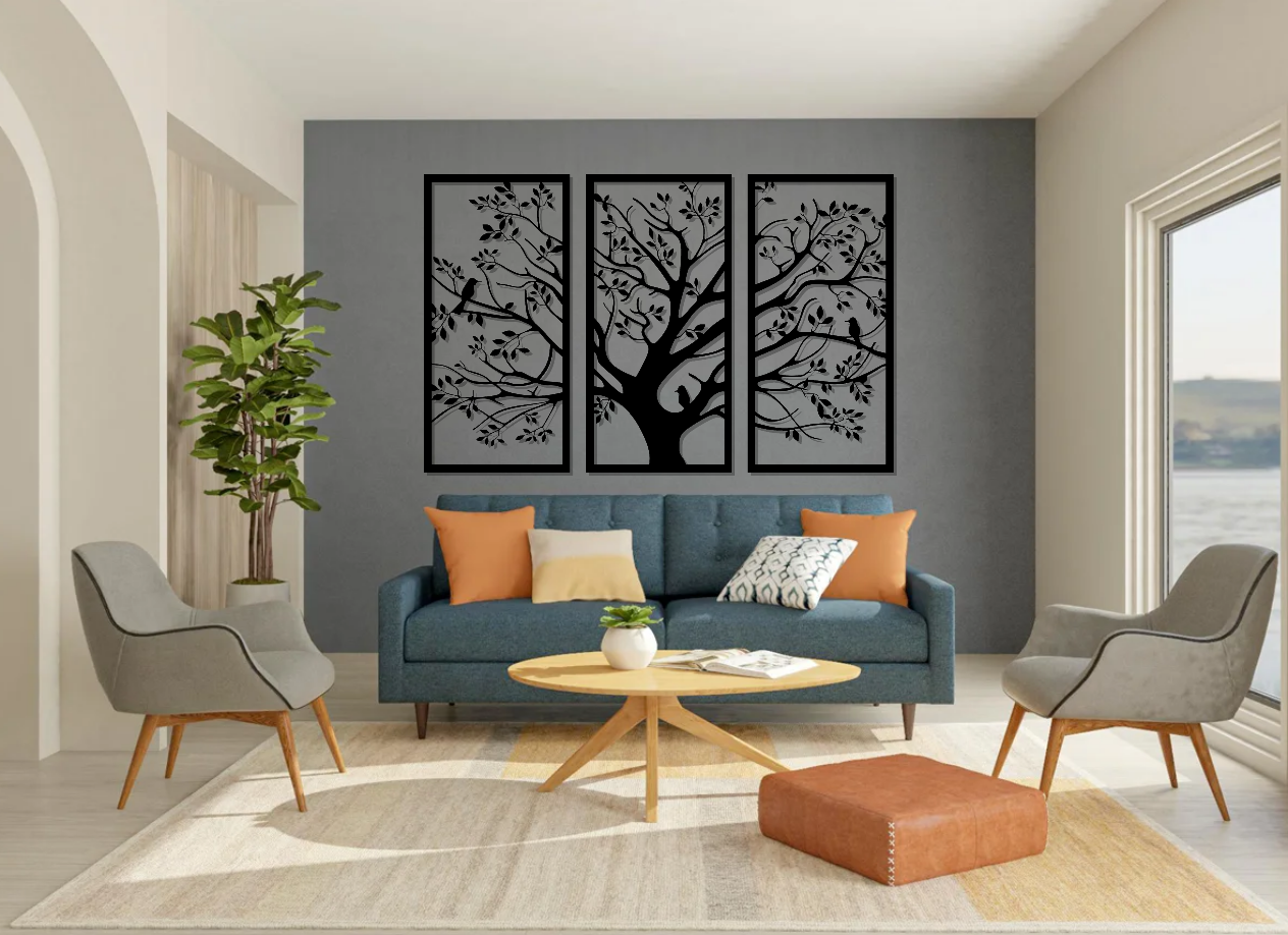 These panels come in a set of three. All have hanging and wall pads allowing the art to be 12mm off the wall creating a realistic showings effect. These are truly stunning and require a large space to hang.